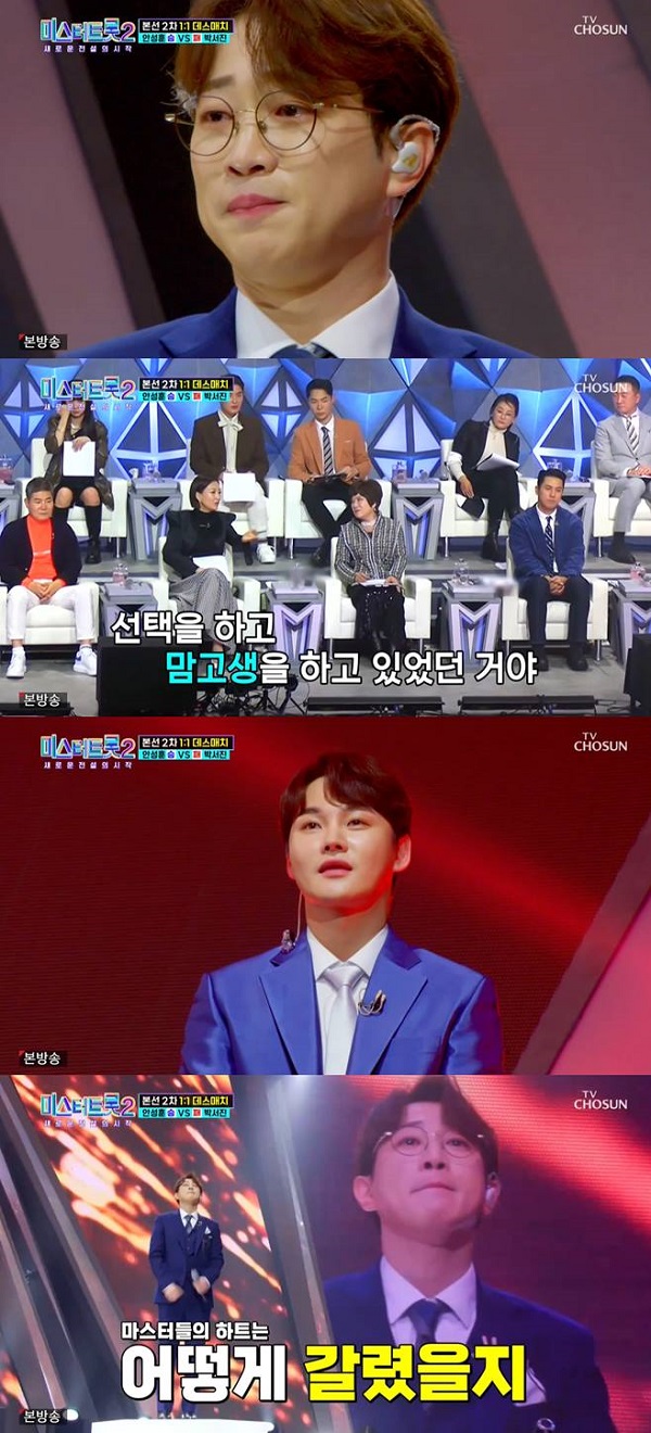 진성은 오늘 제일 괴롭다. 안성훈은 정갈하게 노래했고, 박서진은 노래를 자신만의 매력으로 맛있게 소화했다고 두 참가자 모두를 칭찬했습니다.