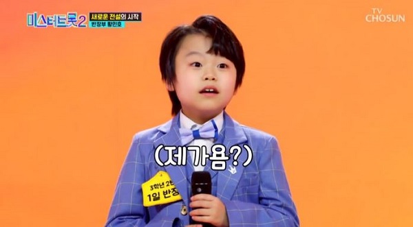 반장부로 나온 황민호는 "초등학교 3학년 2반"이라고 소개를 하며 지원동기는 "형이 지원한다고 하니깐 저도 지원하고 싶어서 나오게 됐다"라며 귀엽고 솔직한 대답을 했습니다.