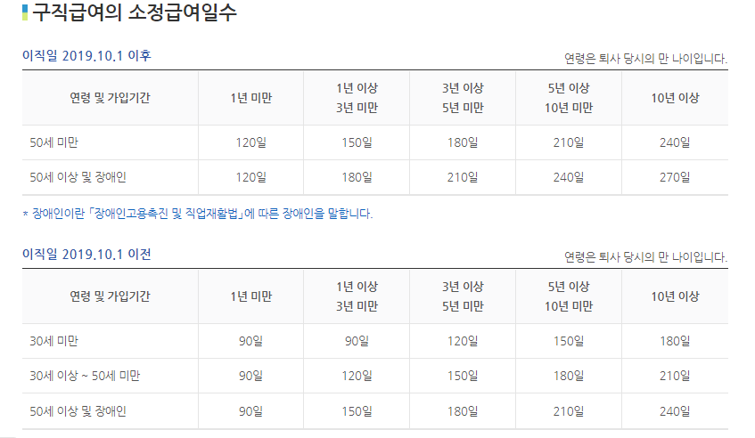 ※ 실직일이 2019년 10월 1일 이전이라면 이직 전 평균임금의 50% 적용