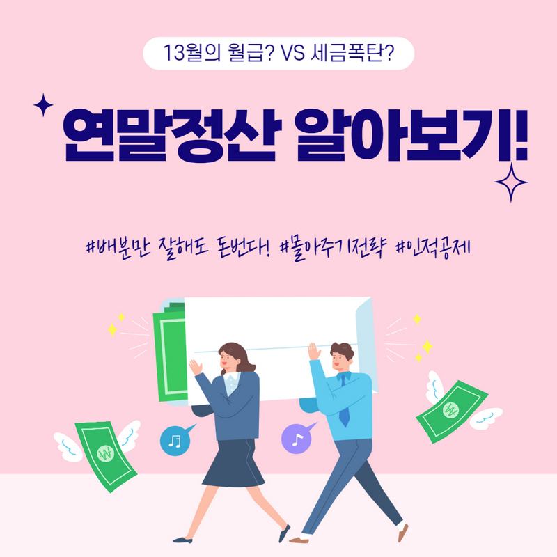 이처럼 연말정산에 대해 기본적인 것들을 알아봤는데요, 미리미리 준비하셔서 모두들 13월의 월급을 받으시길 바랍니다!