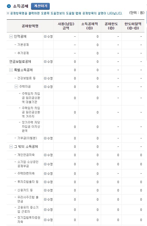 소득공제는 납세자들의 세금을 줄여주는 것인데, 세금을 내야 되는 소득 중에서 여러 공제를 받아 적은 금액을 번 것처럼 보이게 합니다. 국민연금보험료, 주택자금, 개인연금저축, 주택마련 저축, 신용카드 등으로 아래는 국세청 홈택스 연말정산 미리 보기의 소득공제 부분입니다.