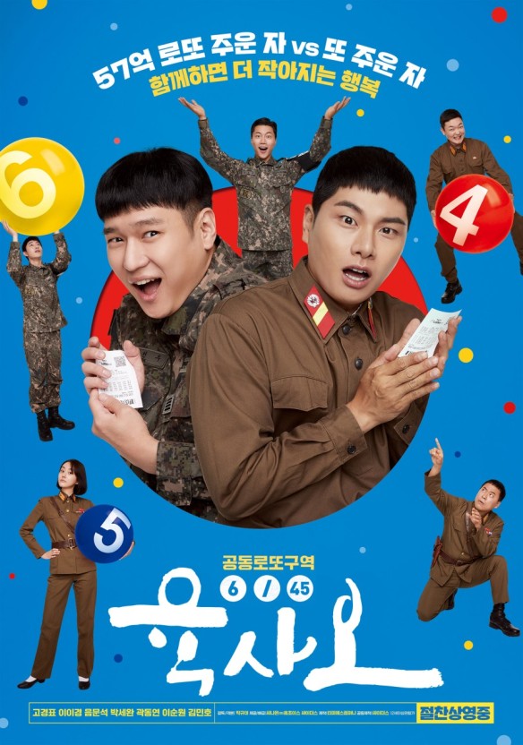 군사분계선에서 근무를 서다가 밖에 나갔다 들어오는 상사들의 군차에 붙어서 들어온 로또 종이를 줍게 됩니다. 천우는 평소와 같이 생활관에서 TV를 보고 있는데 마침 로또 방송이 나와 전날 주워서 들고 온 로또를 맞춰보기 시작합니다. 번호가 하나씩 맞기 시작해서 놀라는데 마지막 번호 발표에 상사가 들어와 TV를 꺼버리는데도 다시 켜서 확인을 합니다. 번호는 총 6개, 모두 다 맞았고 로또 1등 당첨에 놀라 기절을 해버립니다. 얼마 남지 않은 군생활을 마치고 57억 원을 수령할 생각에 하루하루가 즐겁고 마냥 행복해하며 지내게 됩니다. 어느 날, 초소에서 부사수와 근무를 서는 도중에 부사수가 화장실을 간다며 계단을 내려가다 천우가 책 사이에 책갈피로 꽂아둔 로또 종이가 바람을 타고 날아가게 됩니다. 깜짝 놀라 내려가던 부사수를 밀치며 로또 종이를 잡으러 따라가지만 종이는 군사분계선을 넘어 북한으로 날아갑니다. 그렇게 날아간 종이는 북한 병사 리용호 앞에 떨어집니다. 리용호는 별거 아닌 듯 그냥 지나치는데 종이가 리용호를 따라가듯 계속 날아오자 신경이 쓰여 주워서 가지고 오게 됩니다. 북한 해킹 전문가인 후임 방철진에게서 그 종이가 한국의 로또인 것을 알게 되고 재미 삼아 컴퓨터로 번호를 맞춰보는데 1등이라는 것을 확인하게 됩니다. 한편 천우는 로또 종이를 찾기 위해 밤에 몰래 군사분계선을 넘어가게 되고 용호도 북한에서는 돈을 수령할 수 없으니 남한 병사가 오기를 기다렸고, 그리고 둘은 드디어 만나게 됩니다. 천우는 로또 종이가 본인의 것이라며 소유권을 주장하지만, 용호는 돈을 바꿔주면 당첨금의 10%를 주겠다고 얘기합니다. 천우는 그럴 수 없다며 둘의 1차 협상은 결렬되고 사흘 뒤 다시 만나기로 합니다. 천우는 로또 종이를 찾기 위해 밤마다 경계선 근처 구멍을 파고 북한에 넘어가려는 모습에 관심병사로 몰리게 되고, 천우는 강은표 대위에게 솔직하게 얘기합니다. 그리고 통계학에 능한 김민철 상병과 셋이 함께 팀을 만들고 북한의 리용호도 직속상관인 최승일에게 들키게 되어 방철진과 셋이 팀을 만들게 됩니다. 그렇게 모두가 공동급수구역에서 모여 다시 협상을 시작합니다. 당첨금 57억 원에서 세금을 뗀 실수령 금액에 서로의 몫을 두고 팽팽하게 대립하다 계약을 체결하게 되는데, 서로를 믿지 못하니 돈을 찾아올 때까지 병사 한 명씩 맞교환하자고 제안을 합니다. 그렇게 남한에 박천우 병장과 북한에 리용호 하사가 맞교환되면서 각자의 장소에서 여러 가지 사건사고로 우여곡절을 겪으며 하루하루 버티는데, 과연 당첨금은 찾아왔을지 맞교환된 병사들은 다시 돌아갈 수 있을지 유쾌한 웃음을 선사하는 영화 <육사오> 추천합니다.