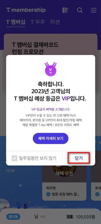-2023년 T 멤버십 등급은 1월 1일부터 적용됩니다. 쓰시던 모바일, 플라스틱 카드로 변경된 혜택을 이용하실 수 있습니다.